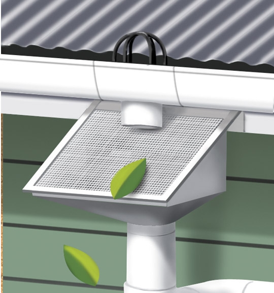The COP recommends against the installation of such products. Alternative solutions include fitting a durable spouting material such as copper, installing rain heads with a leaf trap, or installing a proprietary leaf-proof spouting system.