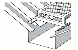 Hail can be prevented from blocking a gutter by install ing a 50 mm x 50 mm hot-dipped galvanised or aluminium RHS bearer , fastened to the penultimate purlin fastenings i (see detail 4.8.4.B. ), to which is attached a proprietary galvanised plank or expanded metal walkway mesh.