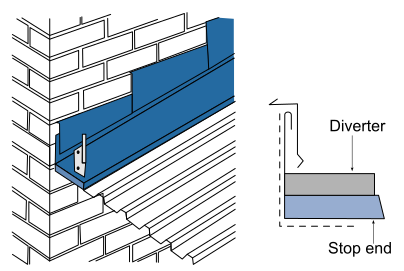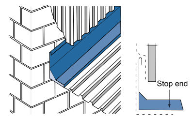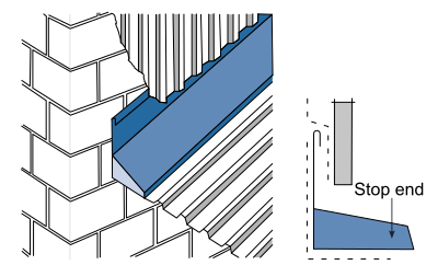 Aprons should be stop-ended and turned down to weather and bird-proof the end of the apron at this junction.