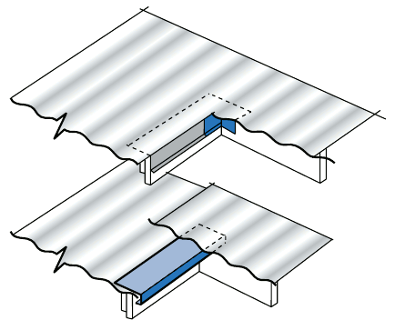 A transition flashing must be provided when the roof cladding weathers the barge at an internal angle (see Transition Flashing) .