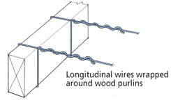 Because extra uplift load will be imposed on the end fasteners of convex spring curved roofs, through the torsional action of the sheets on the fasteners, screws and load spreading washers should be used on the penultimate and the last purlins. This torsional uplift must also be considered when designing purlin to rafter connections and other structures below.
