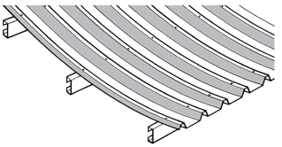 The tables above for recommended radii assume the cladding is draped over an arc where the base chord is parallel to the ground. When the base chord is on an incline, the maximum radius can be increased.