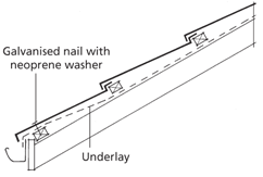 Fasteners must be compatible with the base metal and provide a service life equivalent to the durability of the panel. Typically, these are coated hot-dipped galvanised steel nails.