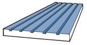 The facings or skins of composite panels are typically metallic coated, pre-painted steel or aluminium, and are either profiled or flat on either or both sides of the panel. The internal skin is also known as the liner skin or sheeting.