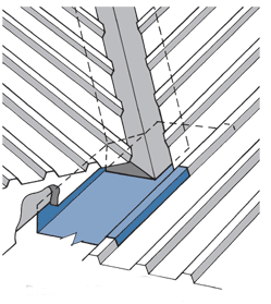 The roof cladding profile will determine the details required to provide a weathertight solution. Although the traditional solution for corrugated profile is to distort the the profile by the rib height, it is not acceptable for ribbed or trapezoidal profiles.
