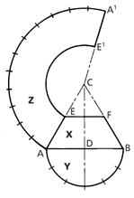 To draw the development Z: With centre C and radius CB, describe an arc AA¹ whose length equals the circumference of cone base.