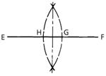 A line drawn through the points of intersection of these arcs is perpendicular to EF and bisects the distance EF.