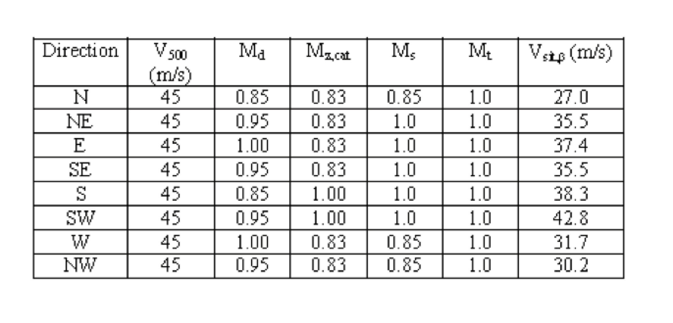 While the details of the calculations are directional, these have been omitted and the worst case, south-west (SW) Direction is used as a means of illustration.