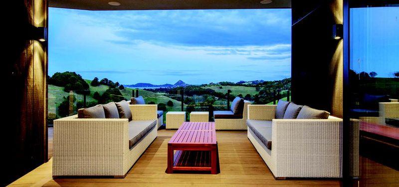 Due to the narrow depth of the design this enables the owners to also capture the view through the house when entertaining in the sheltered western courtyard. This is further enhanced by extensive glazing on both sides of the living pod and walkway to master bedroom pod. This glazing to the rear courtyard opens up to allow the afternoon sun to reach the living areas and also the covered east facing outdoor room that has an expansive view of the ocean.