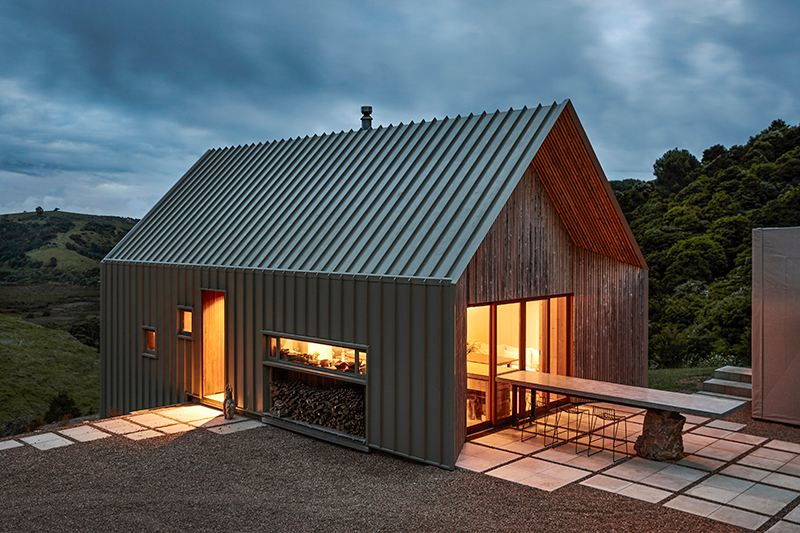 The Lichen colour of the metal is not often specified for houses, but in this case it was chosen for its ability to merge with the natural landscape and with the colour of the canvas. “The Lichen sits beautifully in the environment,” says Gilbertson. “There is a matte softness to it, not unlike the foliage of kanuka and manuka. It also reflects the nostalgia of canvas tents, and with that, a relaxed atmosphere.”