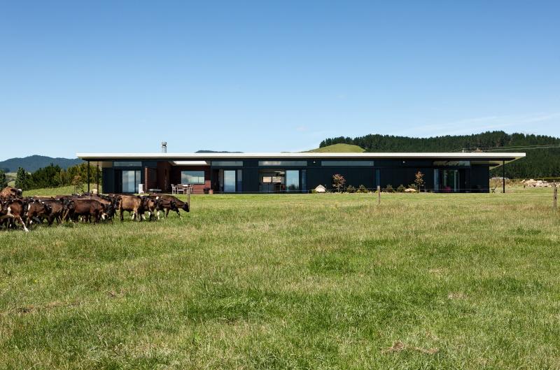 Delwyn and Campbell Clayton-Greene wanted a striking design for the family home on their Hauraki Plains dairy farm but at an affordable cost.