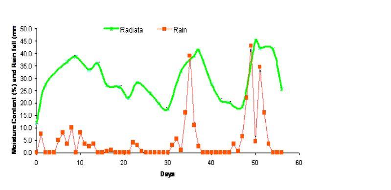 Additionally, when dry Radiata timber is exposed to rain, it can very quickly re-wet above 30% moisture content but take considerably longer to dry back again (Figure 8). Using kiln-dried purlins is only a partial solution