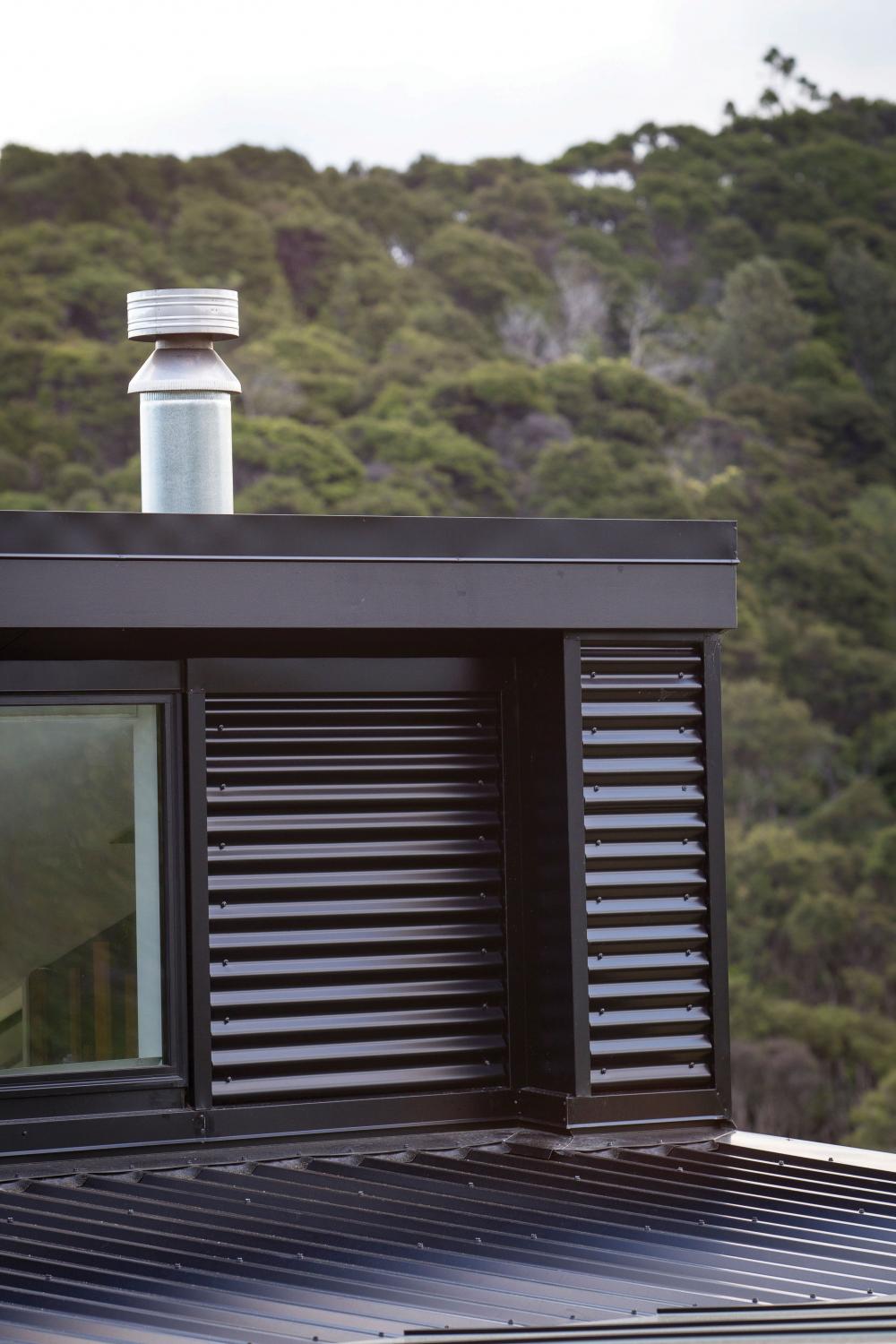 To accommodate those north-facing clerestory windows, Glyn had to design the home with two roof planes – a steeper south-facing roof and a lower-pitched north-facing roof. Due to the lower pitch of five degrees on the northern plane, standard corrugate couldn’t be used so the couple opted for the strong profile of Dimond’s Veedek.