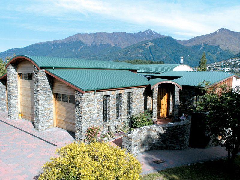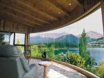 The approach to the upper level is bordered by a curved, schist stone  wall which leads through stone pillars to a huge, solid Scotch Pine entry door. The entrance opens into a foyer bathed in light from the central atrium and offers a welcoming warm glow from selected grain timbers. From this central foyer you can access the garage, office, powder room, master bedroom or move through the double doors into the open plan dining, kitchen, lounge, sunroom area featuring massive vaulted ceilings and a superb view over Lake Whakatipu. The entire top floor has been designed to be fully self contained to provide a future solution in the event of mobility issues.
