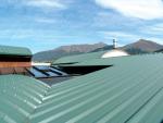 The roof was supplied and installed by Calder Stewart Roofing. It is Permanent Green ZR8 Hi Five which has been crimp curved to follow the roofline designed by Martin Kennedy. (Calder Stewart can crimp curve Hi Five to a radius of less than 0.5m) Calder Stewart Sales Manager Brendan Monaghan says “This roof is interesting in that the design called for a trapezoidal not corrugated profile. This profile gives a more modern feel than that normally achieved with the traditional stacked stone and corrugate combination usually used in the area.”