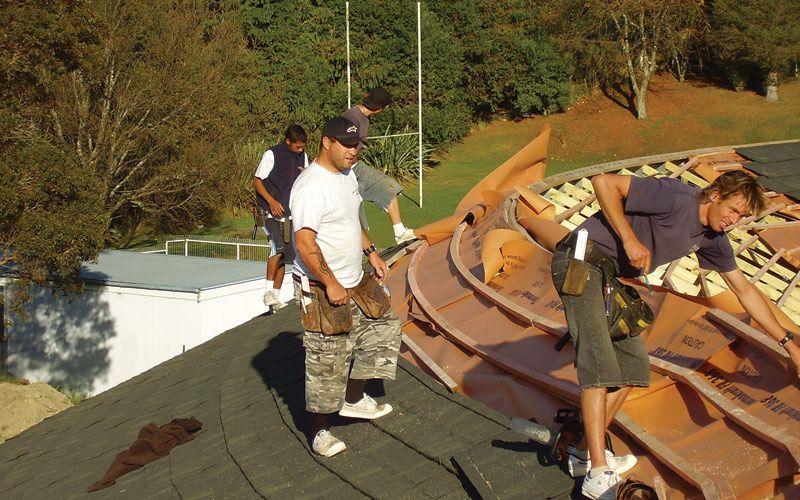 As the project was a 4 hour drive from Gisborne, with no access to accommodation on site, Tony File decide to build a full size mock up of the roof in their yard. “After all”, says Tony, ‘we were being asked to do something we had never done before. This was a worth while