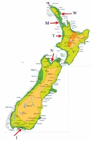 Six exposed coastal sites around New Zealand were chosen based on availability, assessed severity of environment and where security and access could be assured. These were: