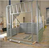 The sheds were designed by Stuart Thomson and built at the factory of Roll Forming Services in East Tamaki who manufactured the galvanised steel framing from Z450 g/m2 and also provided a lot of logistical assistance. After an initial test assembly, these were made up as kitsets, transported to the sites and erected by Ross Simpson on a previously poured concrete slab. The intention was that the land owners would be able to use the sheds for their own purposes during and after the trials so that each of the sheds had a slightly different design.