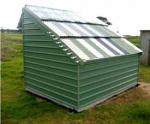 The 30° pitch roof of each test shed consisted of nine prefabricated panels (1.2m x 1.2m x 18mm of untreated plywood) with four different metallic and paint coated corrugated profile sheets on each panel.
