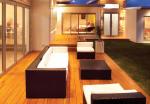 The over all design of the home is computer modelled to take the best possible advantage of the Tauranga sunshine hours. The exposed concrete floors in the main living area provide a heat sink to collect energy which is controlled by the extended soffits to the north and west. The shape of the home allows the maximum space to provide a private garden area at the rear which is well protected from the prevailing wind. The exterior of the home is clad in a combination of Craftstone veneer on a cavity system and Solid plaster on Austral brick veneer.