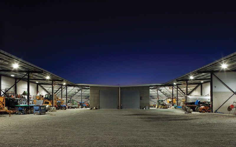 The full-height entry and exit gates on either side of the building are also a striking design feature. These steel gates, which weigh 2 tonnes each, sit opposite each other on the north and south sides of The Dart so when they are rolled back they create a 10m-wide gap so you can see through the building to the vines on the other side. When closed, the gates provide the security needed when you are garaging expensive equipment in an isolated rural setting.