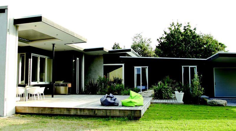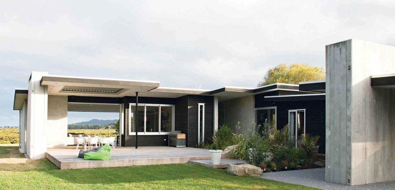 The Plumdek longrun roof keeps the house sitting long and low on the land and the carefully calculated overhangs allow optimum sun control.