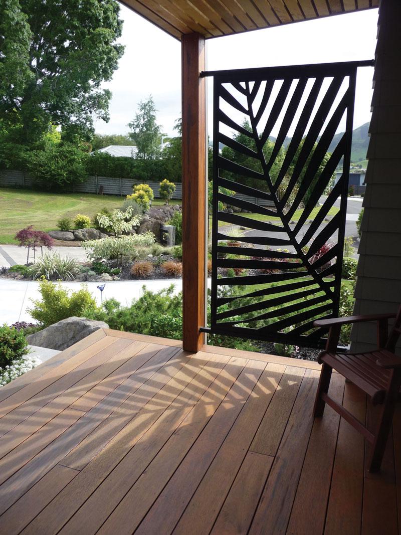 The exterior materials chosen provide for a low maintenance external finish. Austral bricks with Linea weatherboard cladding, Dimond Styleline trapezoidal roofing (in Ironsand) compliments the use of Cedar timber slatting to the underside of the verandahs and the Kwila decking. The roofing also matched the colour of the Mulitfit fascia system with ¼ round spouting. These products have all been designed to minimise painting and maintenance to the exterior of the home.
