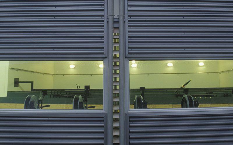 Rowing shells and oars are fragile; separate storage and set-up areas are arranged to avoid accidental damage (OUSA designed and constructed boat and oar storage racks). The buildings are sprinkled (fire destroyed the previous facilities). The unique rowing tank is the result of collaboration between client, mechanical engineer and architect. The re-use of timber oars as handrail and door furniture is credited to Glen Sinclair.