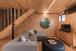The CLT floors and ceilings and ply wall linings offer the warmth and quality feel of solid construction, as well as being durable and easy to patch repair. The CLT also allows for flush fitted LED strip lighting. The lighting was designed with carefully selected wattages and locations to offer statement lighting without additional fittings needing to be added, maintaining a minimalistic look.