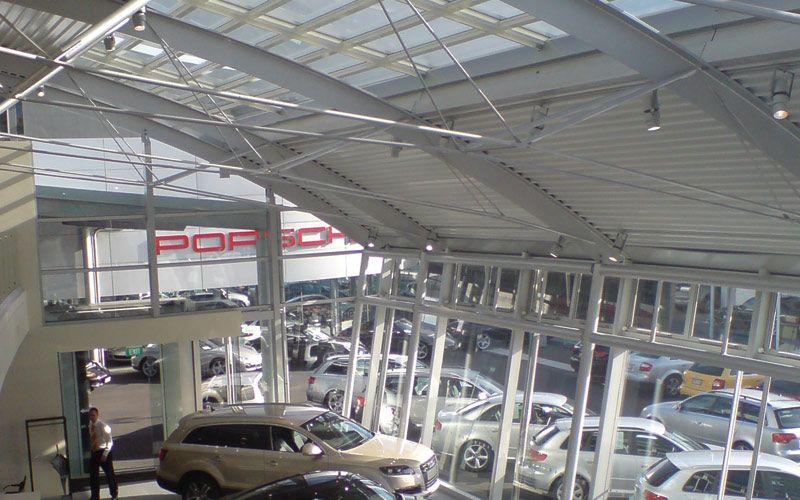 Client: Giltrap Holdings Ltd. Architect: Archaus Architects. Wellington. Telephone: +64 4 802 5630. E-mail: davidm@archaus.co.nz Website: www.archaus.co.nz Engineer: Silvester Clark. Contractor: Fletcher Construction. Planning: Urban Perspectives. Roofing Installer: Premier Roofing. Telephone: 04 473 1552. Roofing, Cladding & Ceiling. Manufacturer: Dimond. Telephone: 0800 346 663. Technical helpline: 0800 766 377. Email: dimond@dimond.co.nz Website: www.dimond.co.nz Curved Showroom Roof: Dimond V-Rib in unpainted Zincalume