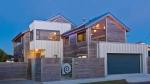 He says some of the home’s form was dictated by height-to-boundary rules and daylight angles as well as the family’s desire to have the living areas upstairs so they could enjoy the views. An upstairs internal covered deck provides privacy and shelter from the prevailing winds. Andrew and his wife Paula say the inspiration for the rebuild came when they were up on the roof, repainting it. The views up there made the thought of adding another floor appealing and the fact that they had to do the painting made Andrew turn his mind to more sustainable, lower maintenance materials.