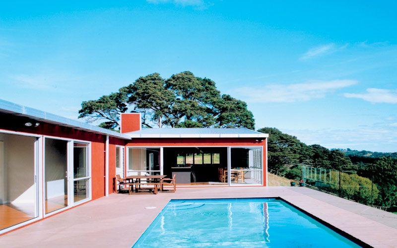 Margaret and Murray required a large home that provided the maximum amount of accommodation for their family. They needed plenty of living areas that allowed for the spatial dynamic of different ages of children and adults. They also wanted a large outdoor entertaining space (including a swimming pool) that was easy to use, and made the most of the views. The cladding had to be durable and easily maintained, and most importantly the house had to be affordable.
