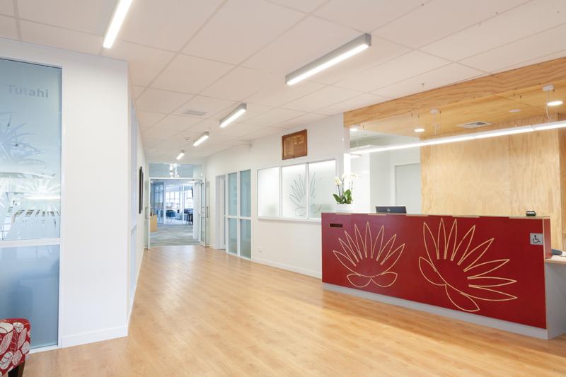 The breakout spaces use the image of a tree house and the cabbage tree theme is carried through in the design.