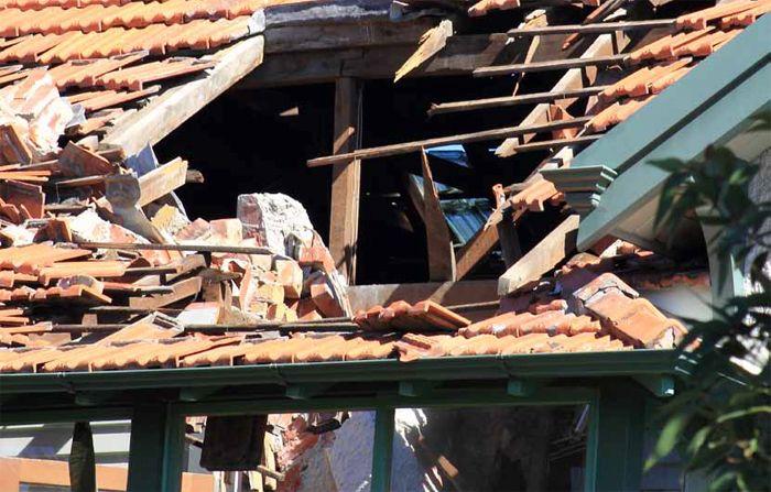 “Chimney collapse on to corrugated steel roofing often caused no further damage,depending on the height of the chimney, but some fell through the roof or caused rafter failure. Chimneys falling on to tile roofs (concrete or clay tiles, or slate roofs) more often fell through into the house, sometimes causing further structural damage and potential loss of life.”