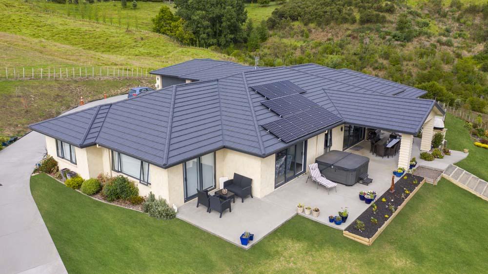 As Auckland couple Allen and Marilyn Welch approached retirement, their daughter and son-in-law suggested that they look at the possibility of designing and building a single house, enabling them to live together under one roof, and provide care in the future. Thanks to an enviable rural location, spacious design, and a Gerard pressed roof supporting a solar power system, they’re living that future vision in a sustainable way.