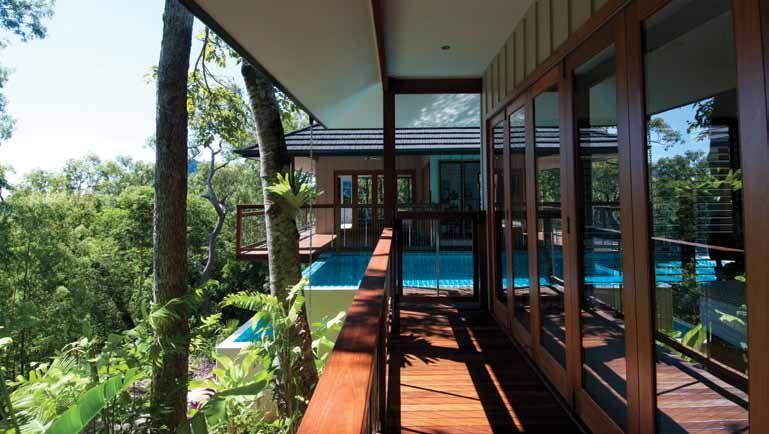 “It looks and feels like a resort,” says Mark Granger, senior designer with Chris Vandyke Designs. “The house has Asian influences definitely, especially with the use of the timber (New Guinea Rosewood) and the shingle style roof, but it’s still very much in the Queensland vernacular.
