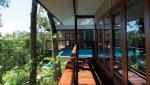 Located on a two-acre bush block high on a hillside bordering World Heritage rainforest, and with panoramic ocean views over the Coral Sea, the home features