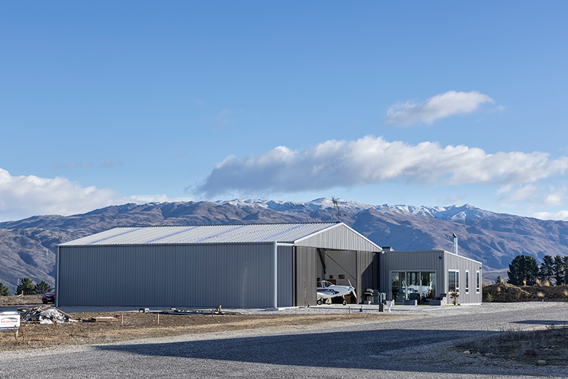 The design and construction of the hangar was undertaken by Wide Span Sheds whose portfolio of hangars built around Central Otago, including at the airport, had already caught the eye of Gerald Harrex who engaged the firm before contacting architectural designer Julie-Ann Ross to design a two-bedroom house adjoining the hangar.