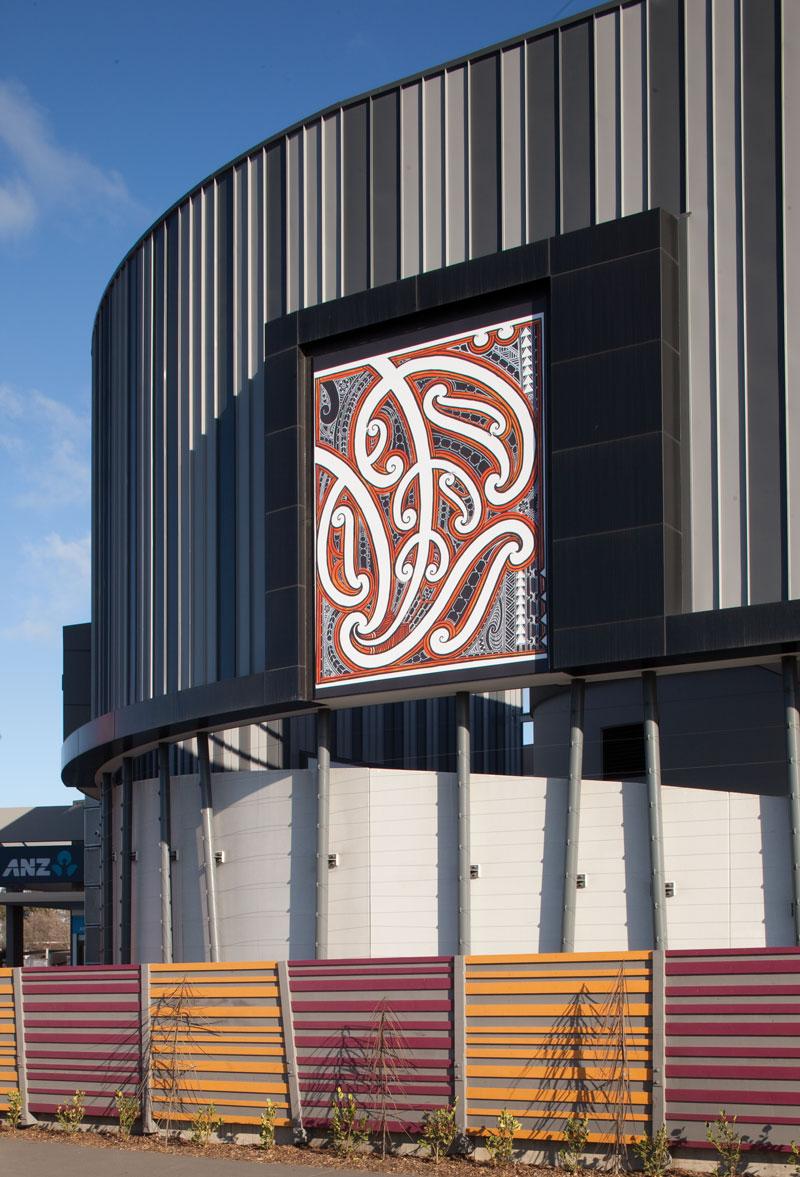 “The vertical Espan cladding, which utilised two colours and two panel widths, worked well to provide interest to the larger areas of facade, on both the exterior and interior faces of the curved wall. Graphics panels, and the black composite aluminium ribbon trimming the facade, along with the stepped parapet and cladding selections provide the building with interest in scale and form, meeting with good urban design principles.”