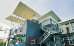 0.55 BMT Zincalume® Dimond Styleline was specified for the roofing and cladding is Zincalume® Corrugate. The silver spangle effect of the Zincalume® contrasts effectively with the warmth of stained cedar and ply panelling and the primary coloured suspended boxes which form the wide window box seat and the office. Zincalume® end caps on the cantilevered exposed rafters protect the end grain and articulate the roof line.