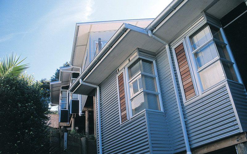 The client was particularly interested in the use of corrugate metallic silver ZRX Colorcote® because of the “graphic”and linear appearance. Costs, maintenance and appearance all playing a part in this decision. The corrugated steel forms the majority of the exterior cladding and has been skillfully blended with stained construction ply for both the visual appeal and the structural integrity of the stand alone modules. ( It should be noted at the time of photography these panels were in the process of being stained.)