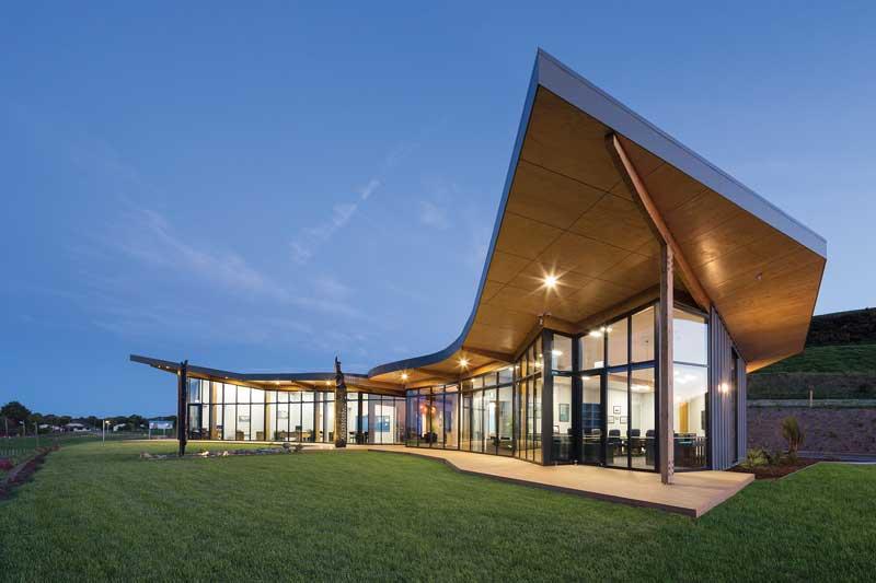 First Principles Architects & Interiors worked on the project with Mt Maunganui firm Form Building and Developments. Graham said he wanted to create a building around the local legend. Through a series of sketches the idea behind the family of whales to create a landmark building evolved, to become a single whale’s tail that formed the shape of the roof.
