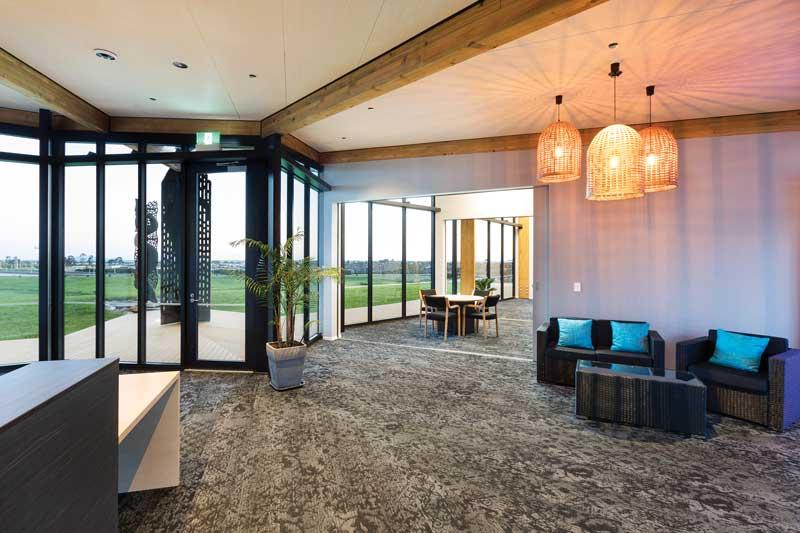 The colour palette reflects the coastal setting – warm sandy hues and blues – and the tones were deliberately restrained so as not to compete with the building and the views of the Bay of Plenty coast.