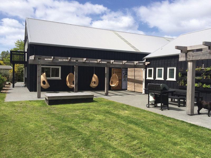 While the buildings have similar forms, the colour scheme Danvers employed also ties them together. Building regulations meant he couldn’t stain the timber; it had to be painted. He chose Resene’s ‘All Black’ for the timber cladding, which contrasts with the lighter COLORSTEEL® Endura ‘Sandstone Grey’ roofing. The paint is one of Resene’s CoolColour range, specially formulated for dark paints so that they don’t absorb as much heat, which can cause the paint to fail and lead to cracking and cupping of timber.