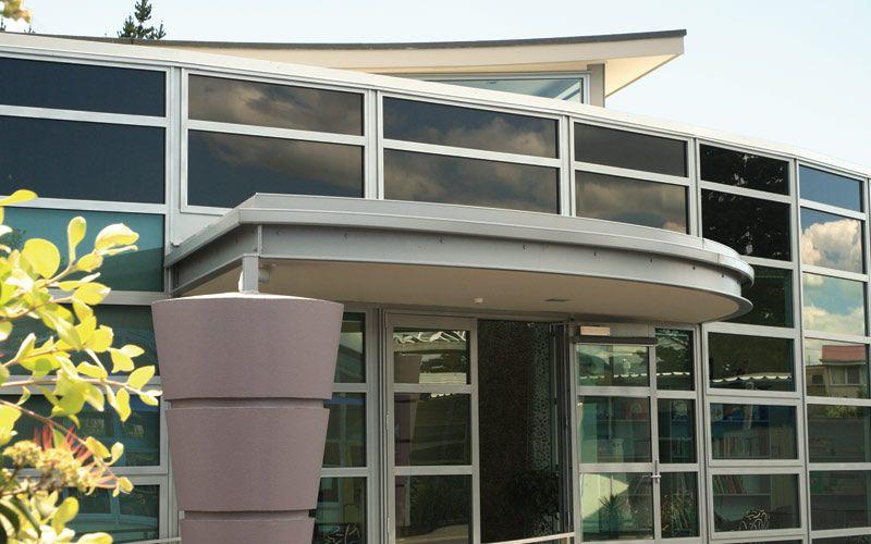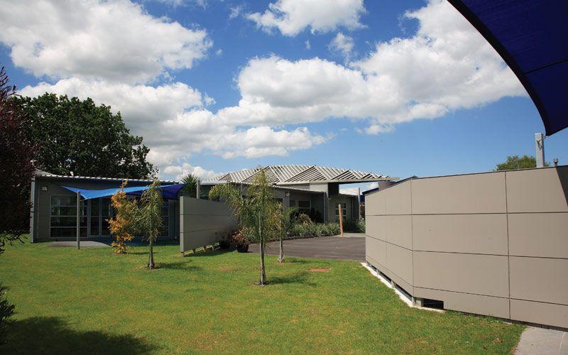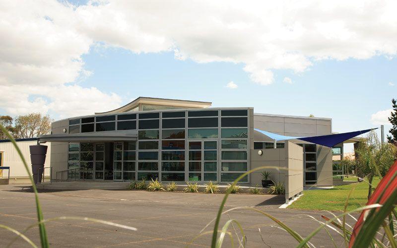 Houston Architects enjoy the challenge in finding innovative solutions that add value to a building project. Seven years ago Mayfield Primary School was looking to have a new Administration Block built for this decile ten school. Wayne Houston offered to produce a sketch plan for Principal, Colleen Murray, that would demonstrate their design ideas for the building. Two other architects were also invited to submit their concepts from which Houston Architects were eventually appointed. The administration building hinged on several key points. 1. It had an economic monopitch roof three degrees from front to rear. 2. It needed to be a commanding building showing some dynamic design to the street frontage giving the school an opportunity to present a fresh face to the community. 3. It needed to have a reflection of the Polynesian culture of the school. The design solution was to bridge the building from front to rear with a stylised inverted Waka shape. This would be used to provide shelter to the entry for the students at the rear of the building and the parents at the front. The resulting shapes were also able to provide overhead clear storey lighting to the arrival area, making this rather small area appear light and spacious. The entrances to the building opens to the reception area that has a curved desk divided by a sheltered money counting area that enables the two receptionists to receive the pupils at the rear entrance or the adults at the front entrance. An interview room and sick bay is adjacent to this area and both spaces are able to be supervised and visually monitored by the reception staff. The staffroom is a generous size with a curved wall presenting to the street acknowledging the mature oak tree in the front yard. The curve of the wall defines the staffroom turning away from the street to create a private outdoor staff area sheltered by a shade sail with generous bi-fold doors opening out for summertime enjoyment.