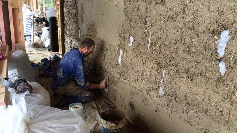 As the plastering work started, Pat’s skills as a practitioner for clay and lime plaster systems in NZ were invaluable. Sourcing the clay from a local properties and hydrated lime from a local quarry maintained the connection with the land and minimised the embodied energy of these materials. Mixing mud for the plastering process is very labour intensive but was aided by the use of a plaster mixer/pump.