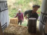 Family and friends and other locals who were on their own journey in straw bale building, joined together for the traditional wall raising where the straw bales are cut, laid and compressed into the house wall. In about 4 working hours they had completed raising the exterior walls – definitely a case of many hands making light work.