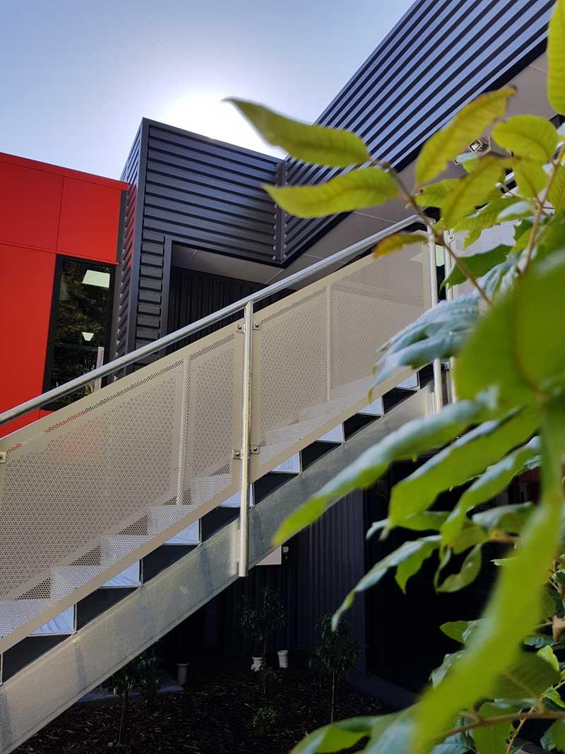 The versatility of roofing steel is well demonstrated when it comes to the external cladding of the building –the material (Brownbuilt 900 in MagnaFlow) chosen for locality and suitability. The material was used on the roof areas but on the walls, it was reversed – both vertically and horizontally doing justice to the strength of this material. Detailing for these design aspects of the build were paramount with Phil spending many hours with MRM and manufacturer Dimond Roofing to get the right connections between steel cladding, Hardies product and aluminium. The curved columns were particularly important where they interacted with the external cladding with specific detailing required to satisfy durability and weather tightness.