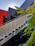 The entry lobby is an atrium design with a connecting stair to the first floor where CBNZ is located. At ground level you are confronted by exposed steel columns and beams, timber ceilings and glazing. There are no ceiling lights visible with indirect lighting situated in the flanges of the steel beams which illuminate the area without glare to work surfaces. The ceiling has been kept lower than the usual 3.0 to 4.0m height but is 2.4m so more akin to residential spaces.