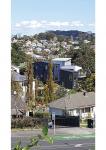He says, “Although there was inevitably going to be large earthworks costs for such a steep property, as a strategy to conserve the budget, complex engineering for the balance of the house was reduced to the bear minimum. The lightweight standard timber structure perches comfortably on low cost timber pole foundations that anchor into the rock 6m below ground.